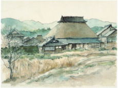 洋画家・向井潤吉は終戦後、次々と姿を消す伝統的な民家を追い求めて、全国を歩きました。民家を探す旅路の主な取材先は埼玉や長野、岩手などの東日本でしたが、向井は西日本の気候や風土が生み出す四季折々の景色にも出会い、絵筆をふるいました。