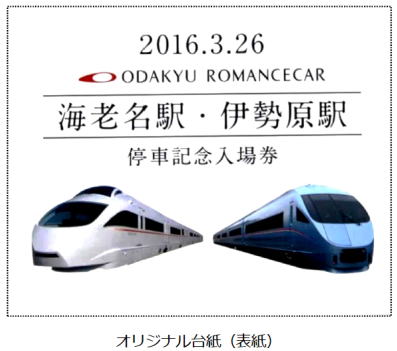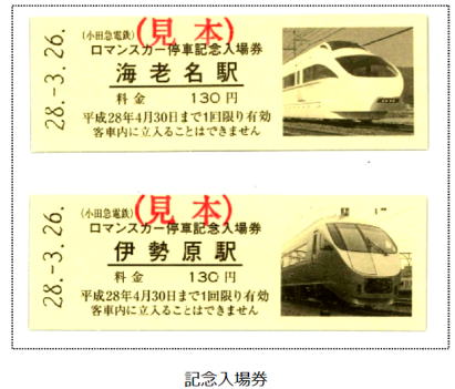 これを記念して3月19日から両駅の記念入場券各1枚がセットになった「小田急ロマンスカー海老名駅・伊勢原駅停車記念入場券セット」が発売される。