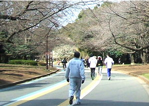 駒沢オリンピック公園内の外周遊歩道は一周すると、約2qになりますから、それを各人の体調に合わせて回っていただきます。その回った回数と距離を加算して記録しながら、東海道53次(東海道を踏破後は中山道へ)を京都まで歩いてみようというものです。
