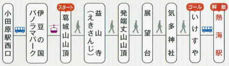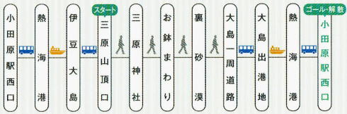 ■小田急線小田原駅8:00〜9:00 ▼ゴール:12:00〜15:00・解散:熱海駅13:30〜16:30まで |