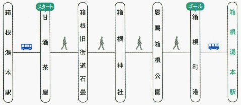 ■箱根湯本駅9:30〜10:30▼ゴール:箱根町港12:30〜14:30まで |