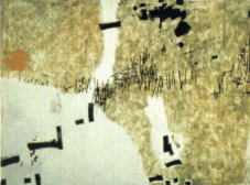 具象的な形なく複雑に交錯する線と色面だけで構成された作品群。清川が1951年〜1954年の渡米で身につけた抽象表現。本展ではその中から1963年の再渡米までの間に制作した油彩画約10点を展示。 |