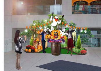 小田急サザンタワー2階エントランス中央に、「おばけの収穫祭」をテーマとした装飾や顔出しパネル。ハロウィンに参加して楽しめる記念撮影用のフォトスポットが設置されます。
