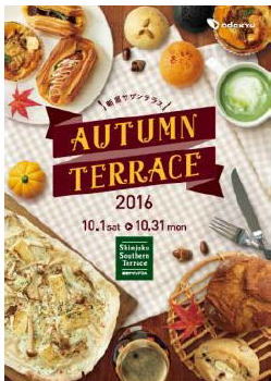 新宿駅南口の新宿サザンテラスで、2016年10月1日(土)から10月31日(月)まで、「AUTUMN TERRACE(オータム テラス) 2016」が開催されます。