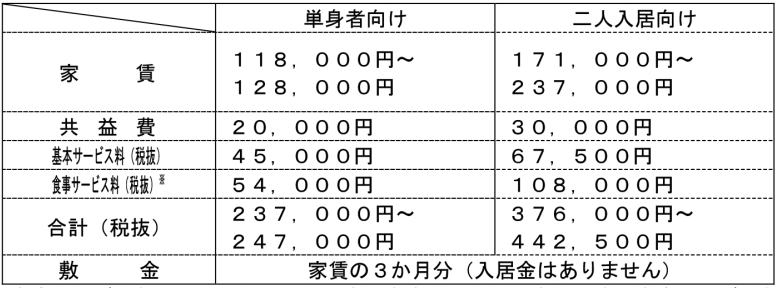 ※ 食事サービス料は、30日(1日3食)喫食した場合の金額です。食事サービス料には、厨房維持費(朝食代込み)15,000円が含まれ、当該厨房維持費は食事サービスをご利用になる入居者全員にお支払いただきます。 |