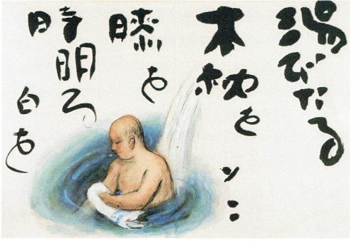 画:水木伸一、書: 河東碧梧桐〈碧水帖 上州ぬる湯の記〉1929年