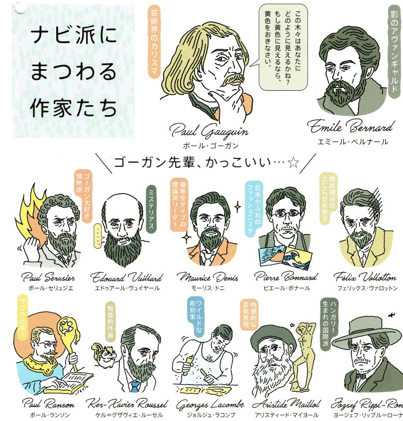19世紀末のパリで、ゴーガンから影響を受け、自らを「ナビ(預言者)」と呼んで、前衛的な活動を行ったボナール、ヴュイヤール、ドニ、セリュジエ、ヴァロットンらを中心とする若き芸術家のグループ「ナビ派」の画家たちは、新たな芸術表現「近代都市生活の諸相を平坦フラットな色の面で表す装飾性と、目に見えないものを描く内面性――日常と神秘」をあわせ持ち、革新的な芸術活動を行った。