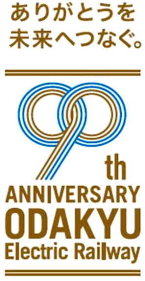 | 【 記念ロゴ 】 4本線の水引きで表現した「90」、上下2本ずつのラインは2017年度末に控えた複々線完成をイメージしています。 |