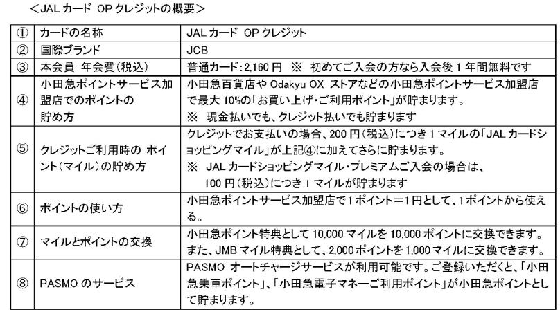 (2)内容 期間中、「JALカードOPクレジット」に新規でご入会いただ方に、マイルおよび小田急ポイントをプレゼント。(JALカードの会員専用ページ「MyJALCARD」より参加登録が必要となります)