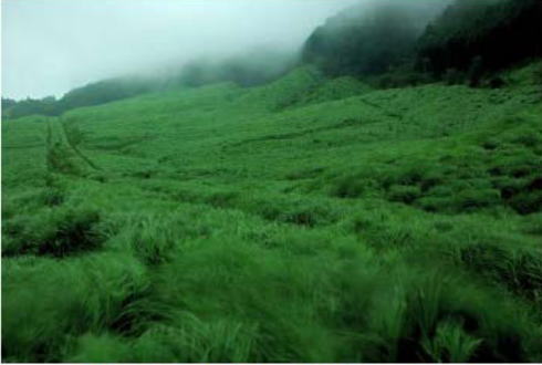 | 【写真左】「箱根の森から」(右)と「箱根の森から 緑茶」【写真右】寄付金一部が保護・保全活動に活用されている仙石原すすき草原(イメージ) |