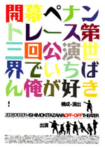 | 路上で培ったパフォーマンス魂ひっさげ演劇界に殴り込み!第3回公演「世界でいちばん俺が好き!」下北沢OFFOFFシアターありがとう!2008謹賀新年。その開幕にふさわしい華やかなアフロを咲かせます。演劇〈アフロ〉路上/パフォーマンス集団開幕ペナントレース。乞うご期待!です♪ |