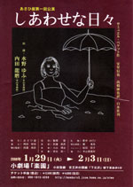 | 人らしい暮らしができ難くなっています。生存権が保障され、しかも豊かさを狭持している国、日本で市民が餓死することなど誰が想像できるでしょうか。「動き回る自由が許されず、その上その存在すら段々縮小していく」主人公ウイニーに重なります。ベケット初のひとり芝居。 |
