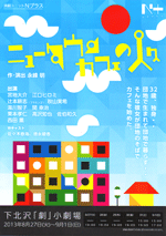 “Nプラスとは、毎夏「劇」小劇場で公演してきた“Nの2乗”の作・演出である永峰明のもとに、新たに集まった役者 達で作られる演劇ユニットです。 今回は造られて40年経過したニュータウンの現在と、その入口にオープンしたカフェに集まる人々のお話を御覧 いただきます。